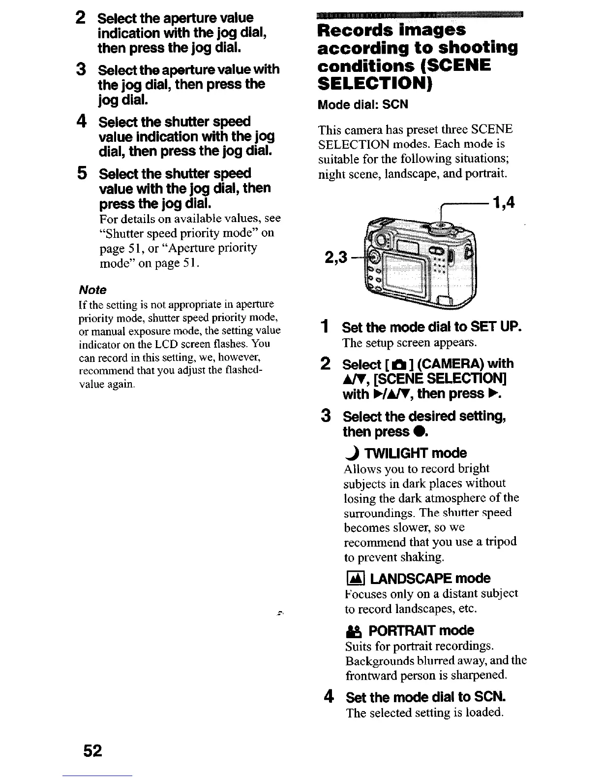 Mode dial: SCN