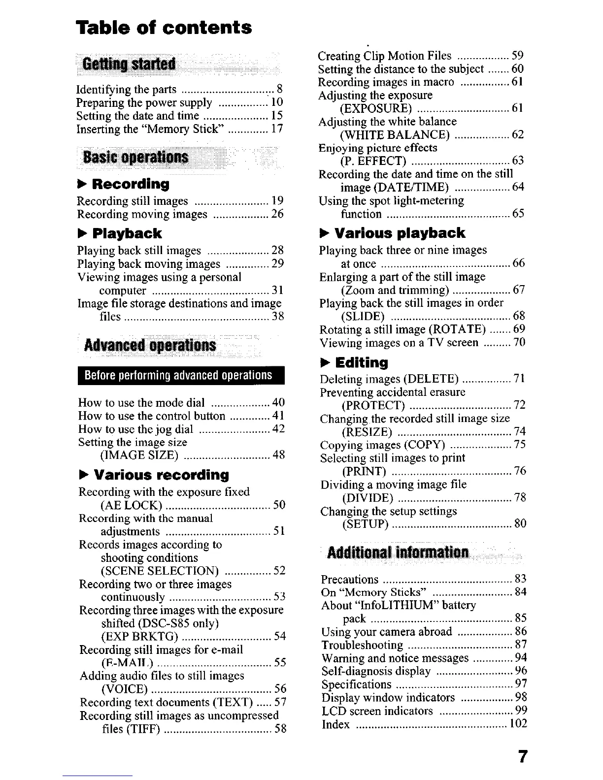 Playing back still images ._..___............. 28