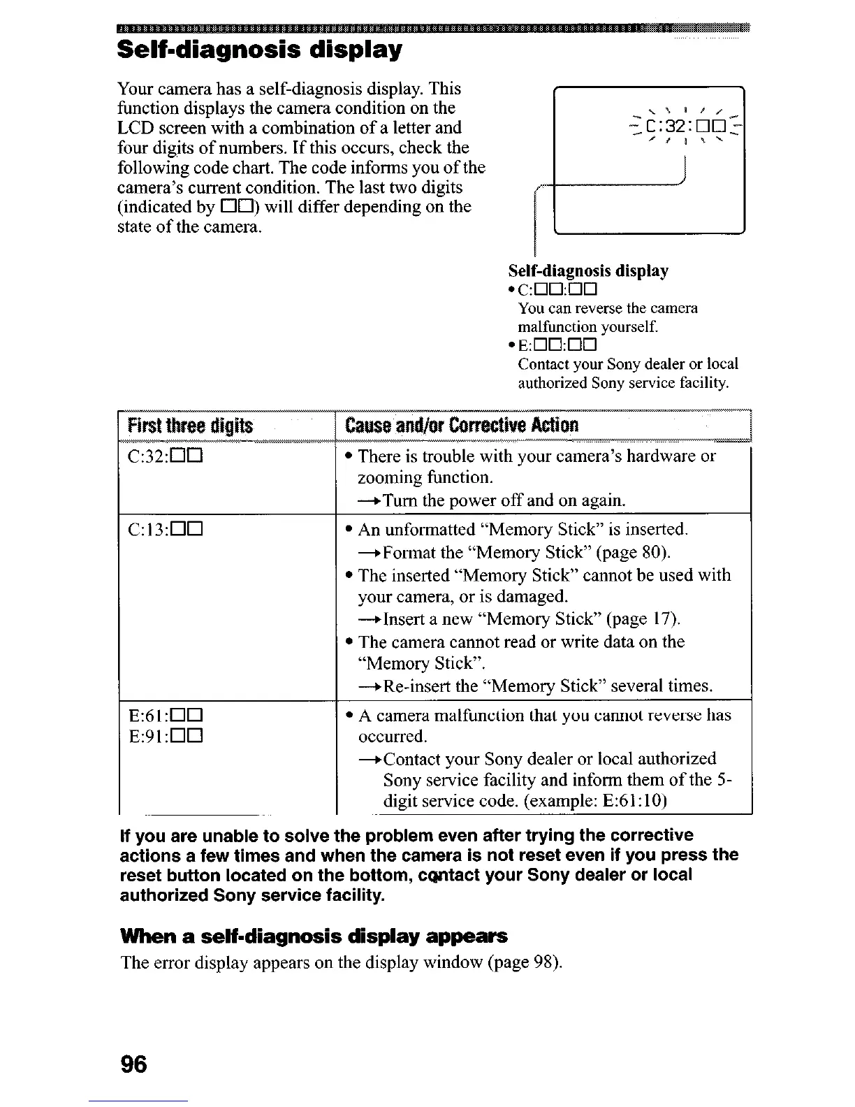Your camera has a self-diagnosis display. This