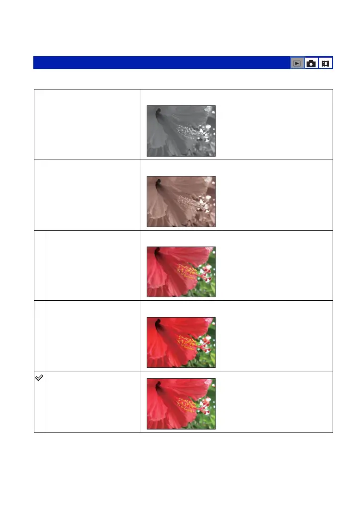 • You can select only [B&W] and [Sepia] when shooting movies.
