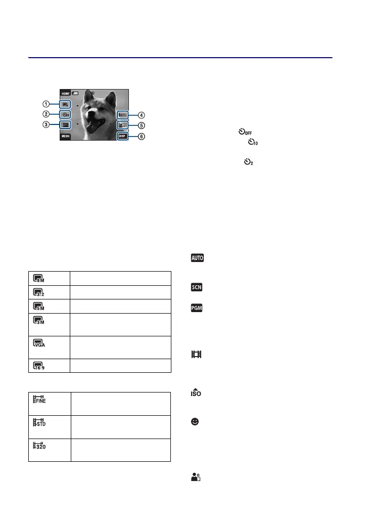 Image size/Self-timer/Shooting mode/Flash/Macro/Display