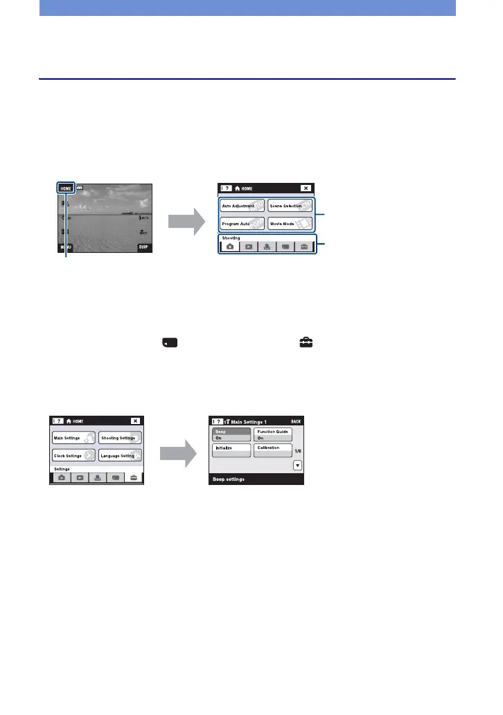 Learning the various functions – HOME/Menu