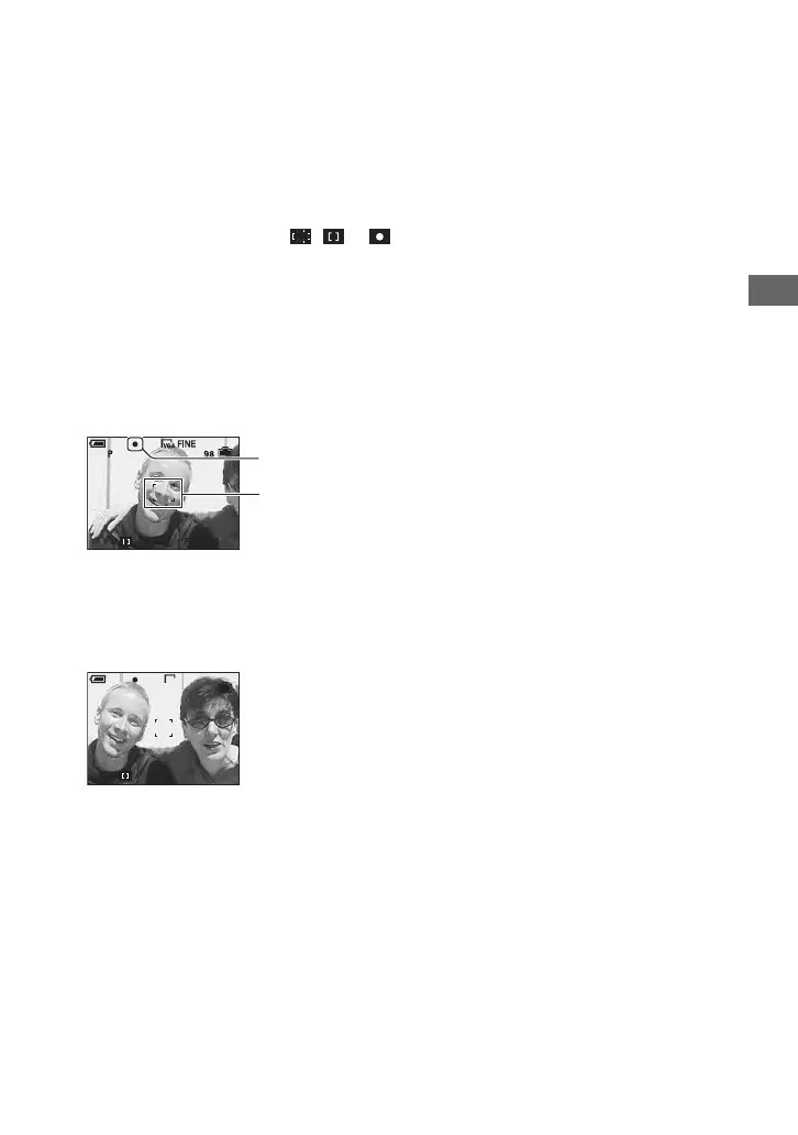 center of the frame. In this case the , or indicator flashes and the AF range finder frame is not