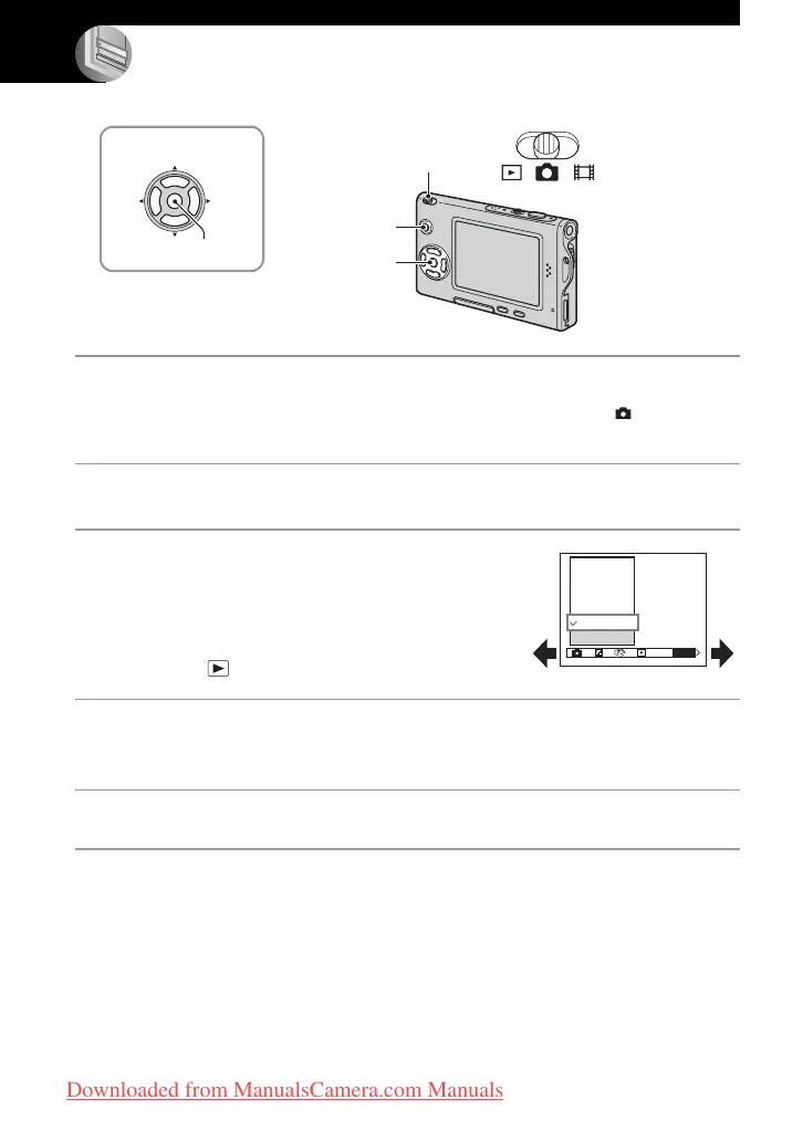 Different items are available depending on the position of the mode switch and the (Camera) menu