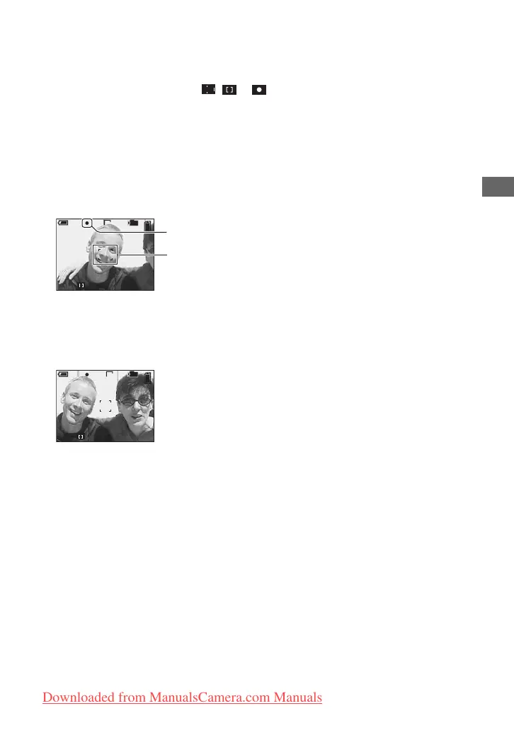 the center of the frame. In this case the , or indicator flashes and the AF range finder frame is