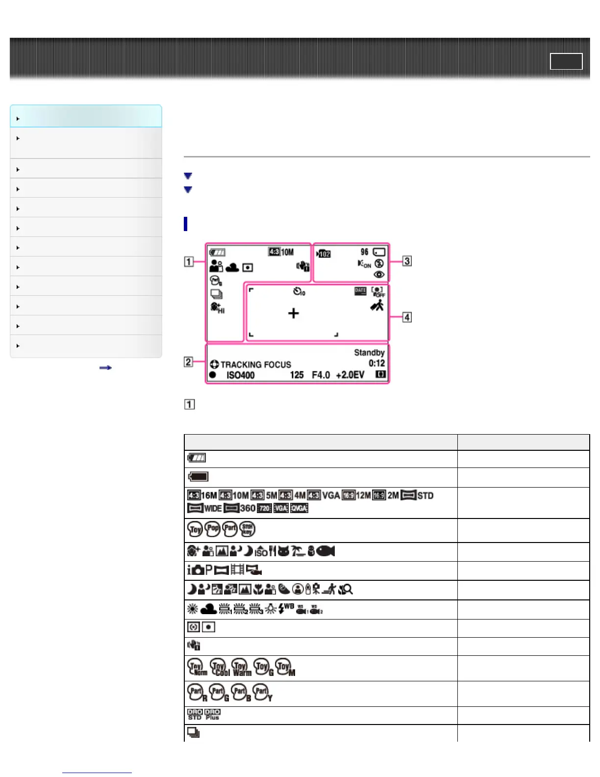 Top page > Before Use > Names of parts and list of icons displayed on the screen > List of icons