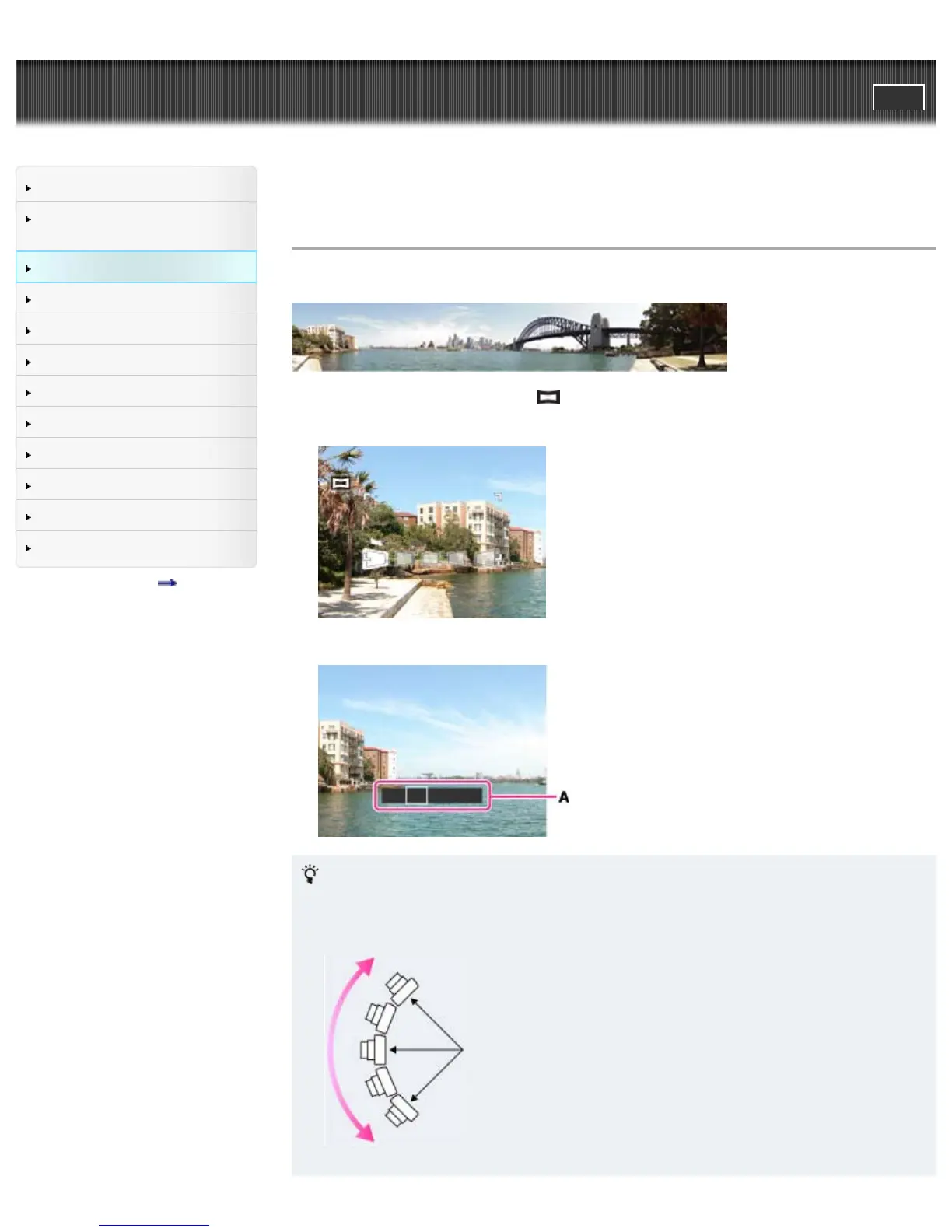 Top page > Shooting > Selecting the shooting mode based on the subject > Shooting panoramic