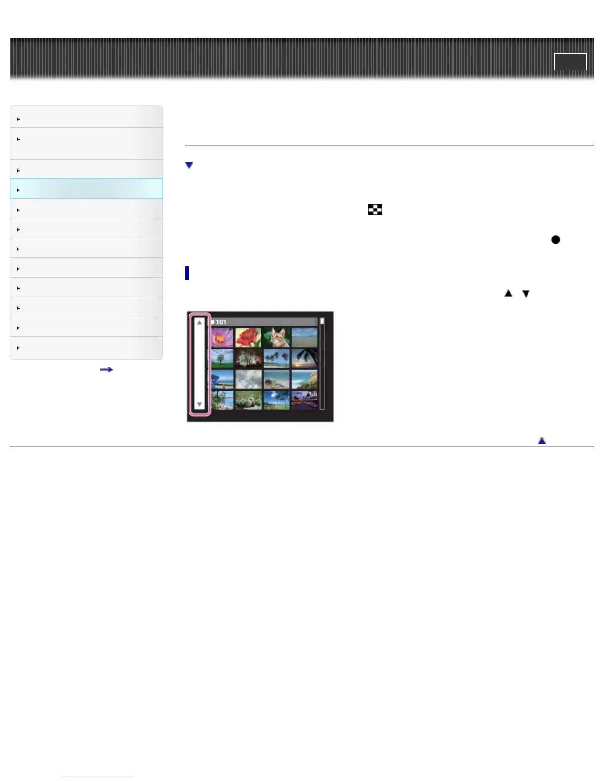 Top page > Viewing > Viewing still images > Image Index