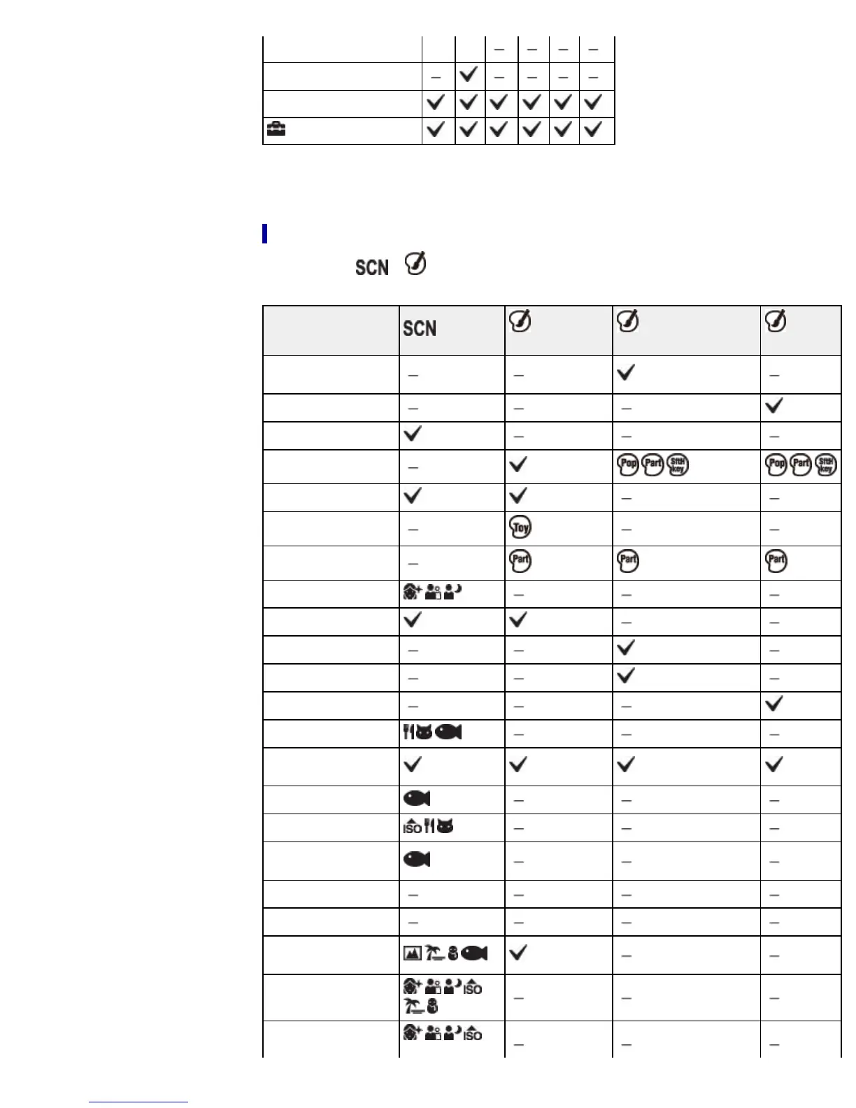 MENU items available in Scene Selection/Picture Effect mode