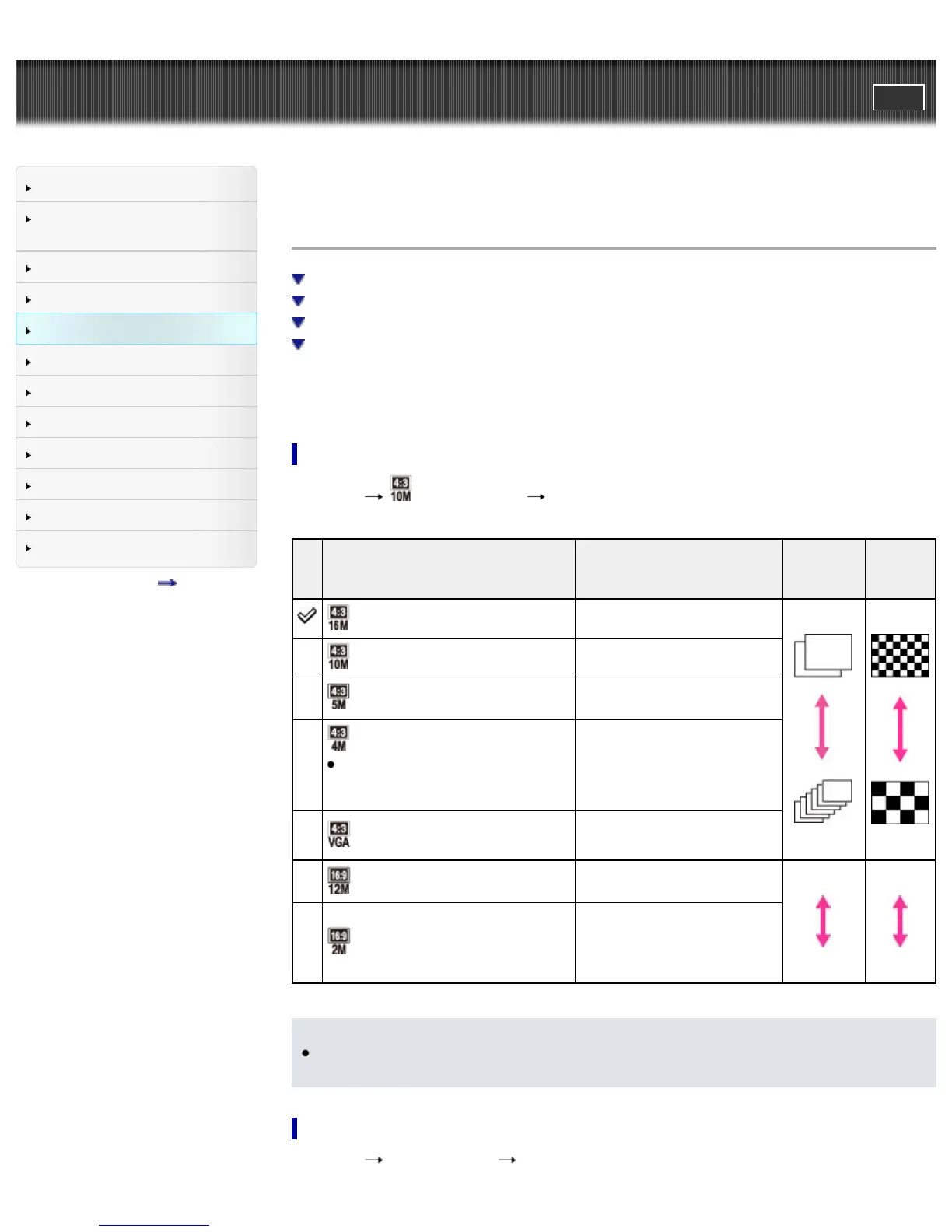 Top page > Useful shooting functions > Using shooting functions > Still Image Size / Panorama Image