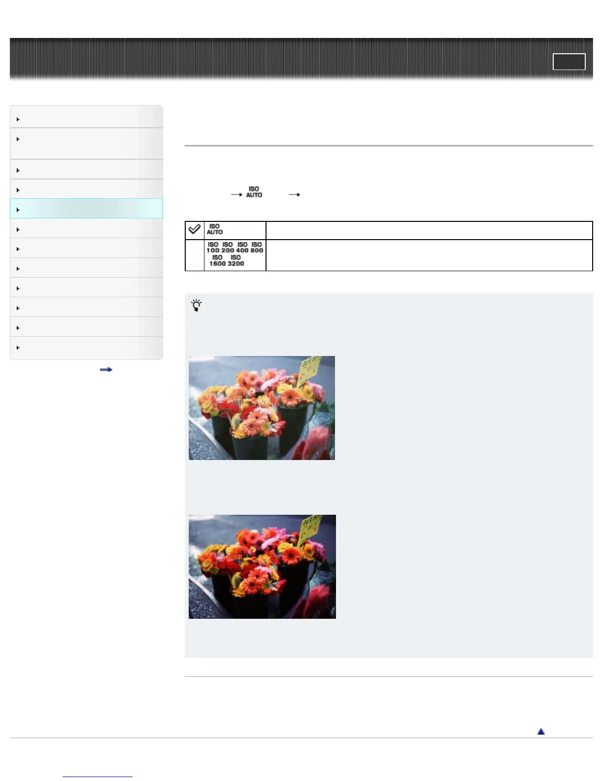 Top page > Useful shooting functions > Using shooting functions > ISO