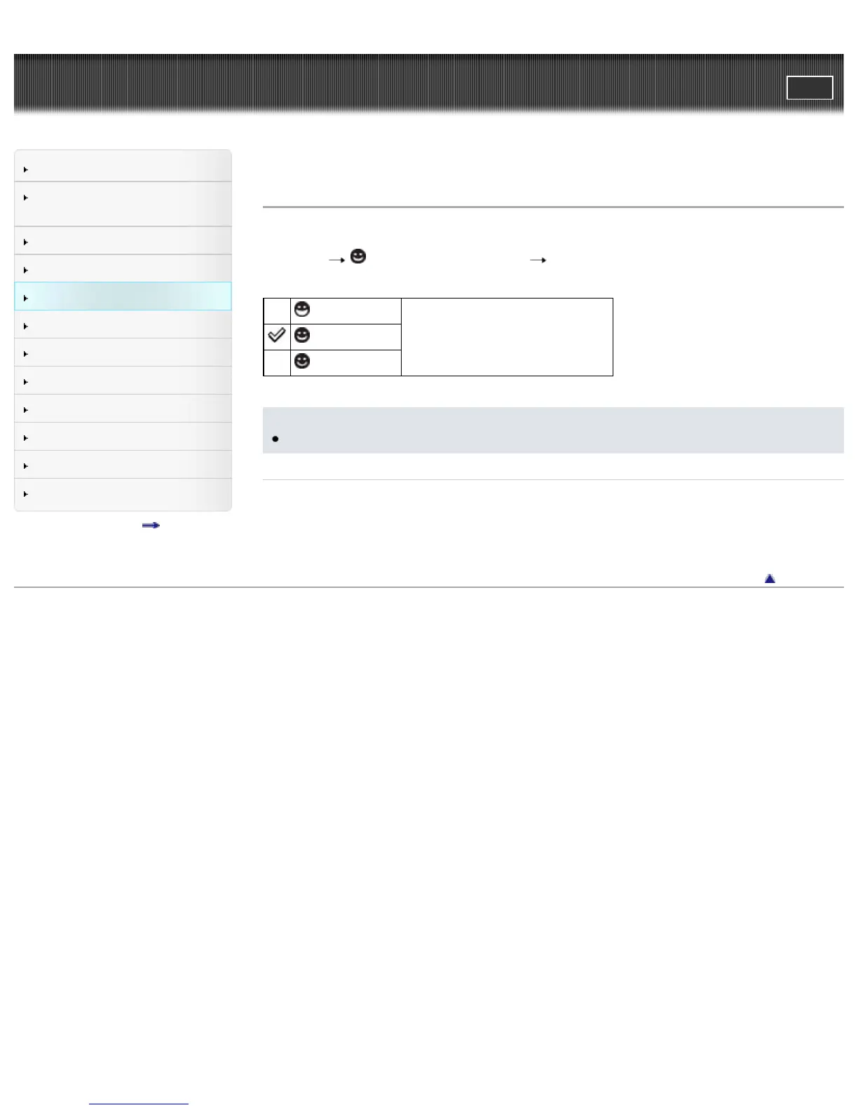 Top page > Useful shooting functions > Using shooting functions > Smile Detection Sensitivity