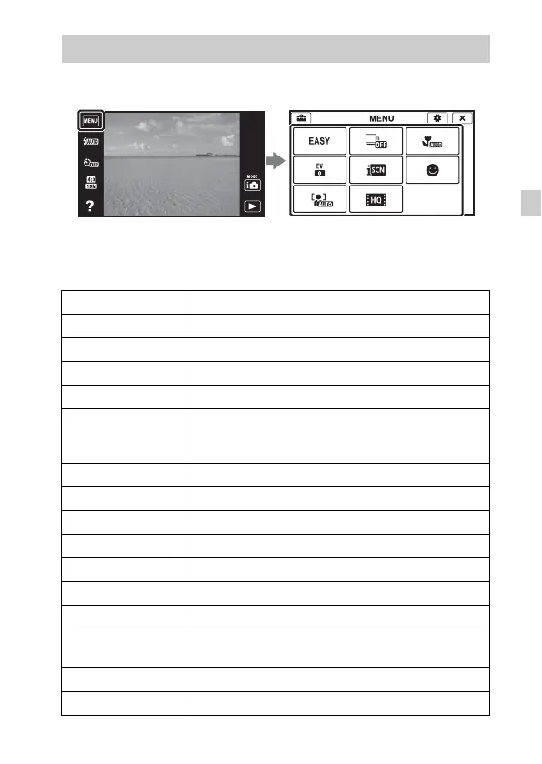 觸碰螢幕上的MENU,可以操作拍攝或播放時使用的其他功能。本相機配
