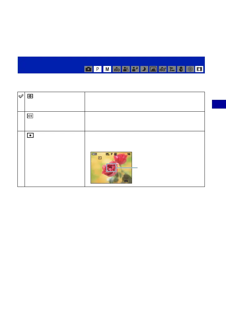 Measures only a part of the subject (Spot metering).