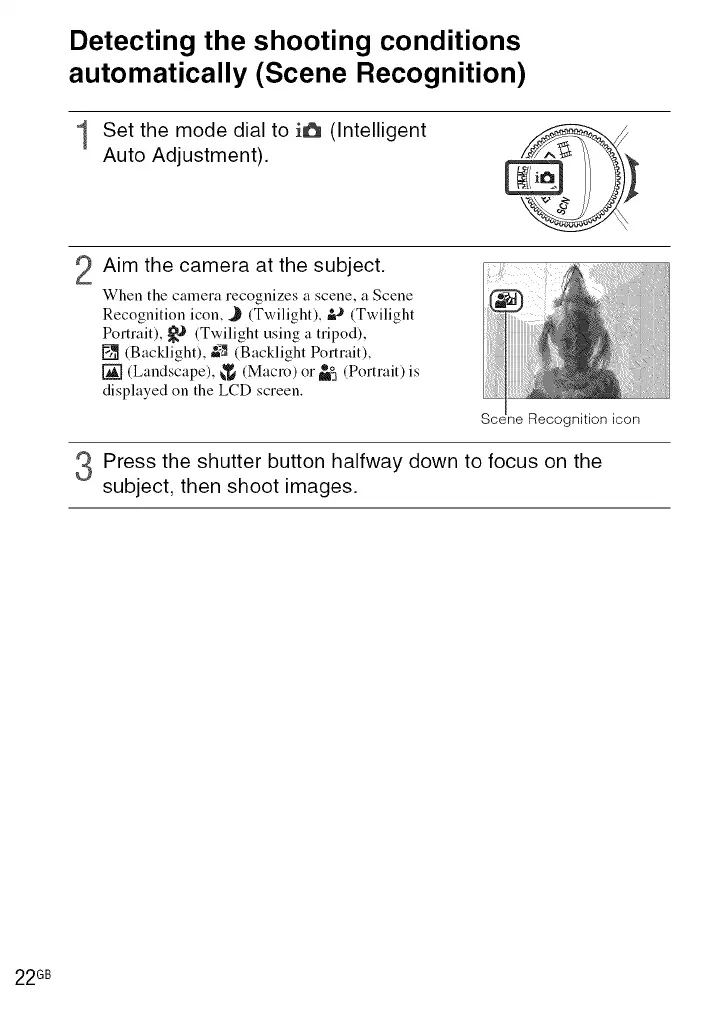 1 Set the mode dial to i6 (Intelligent