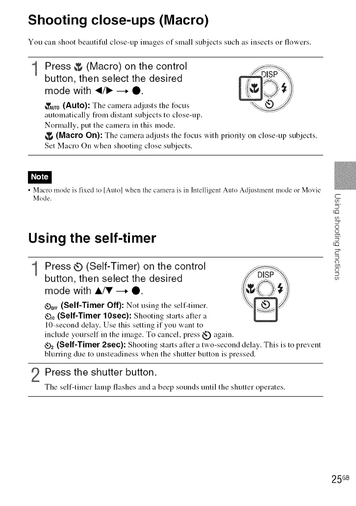 • Macro mode is fixed to [Auto] when the camera is in Intelligent Auto Adjusm_ent mode or Movie