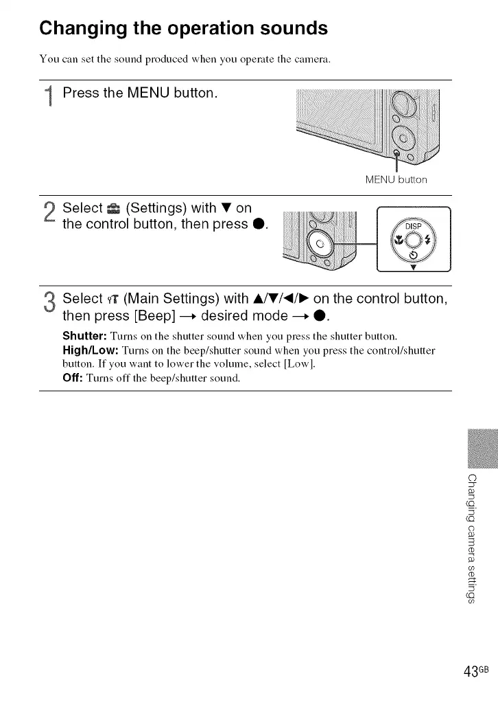 High/Low: Turns on the beep/shutter sound when you press the control/shutter