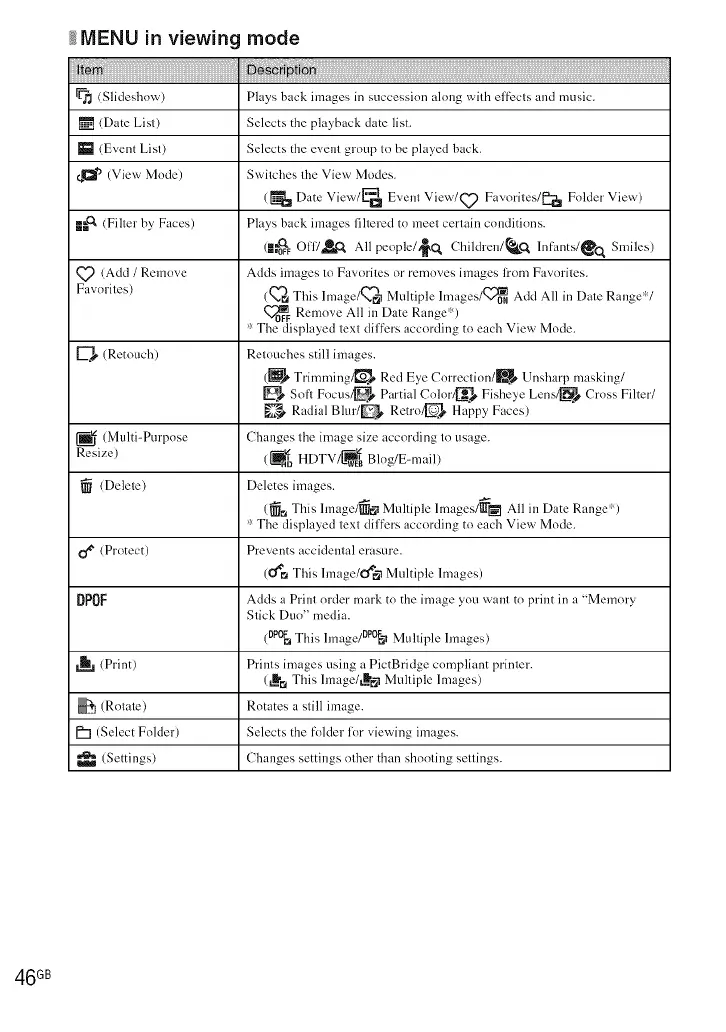 DPOF Adds a Print order mark to the image you want to print in a "Memory