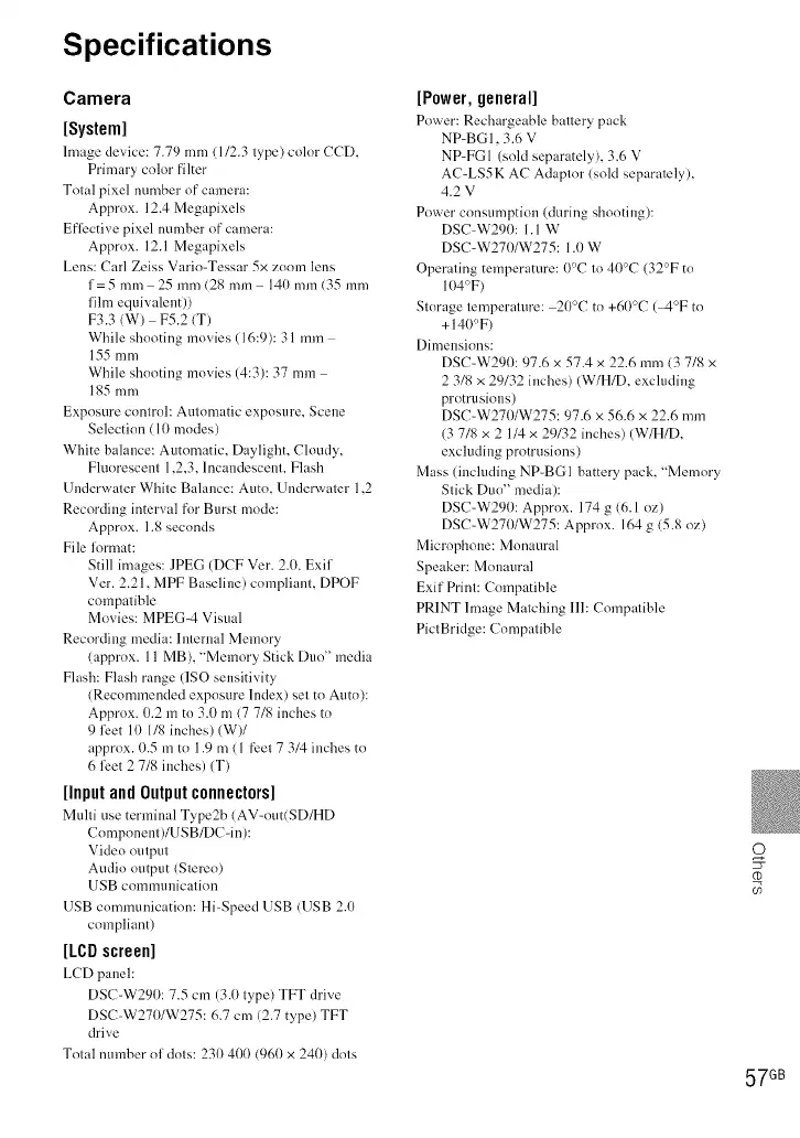 DSC-W270/W275: Approx. 164 g (5.8 oz)