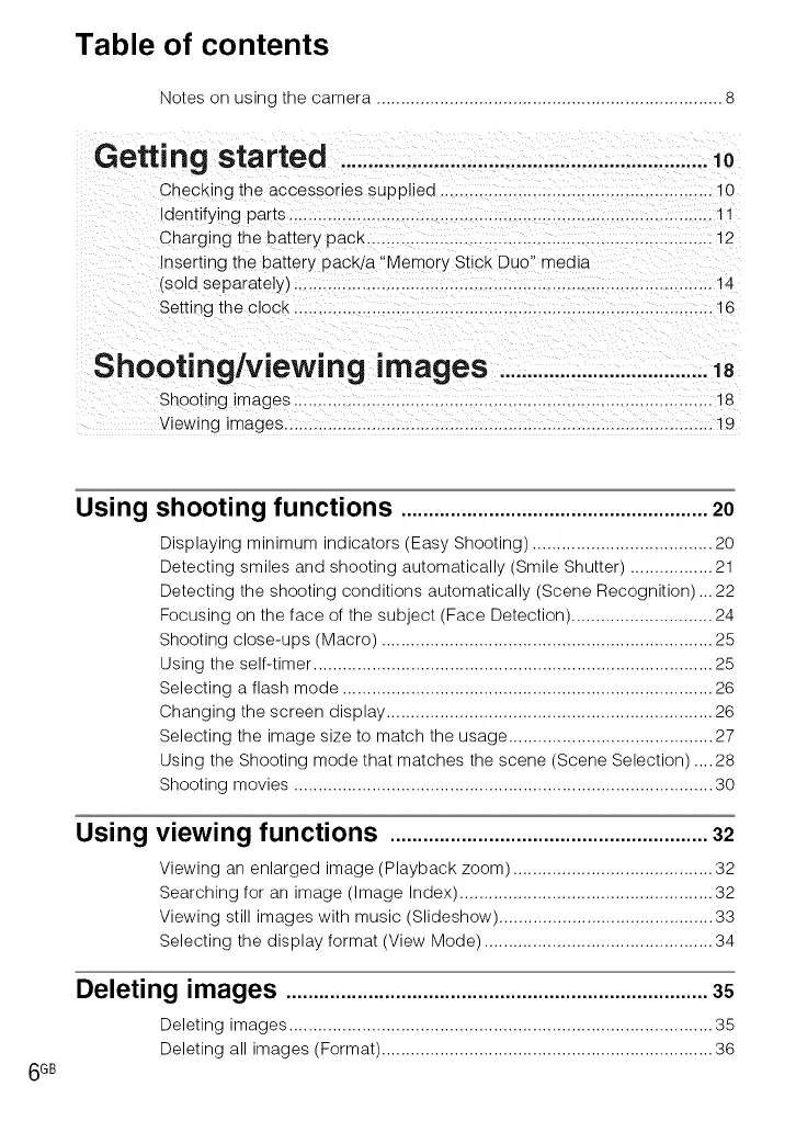 Shooting images ...................................................................................... 18
