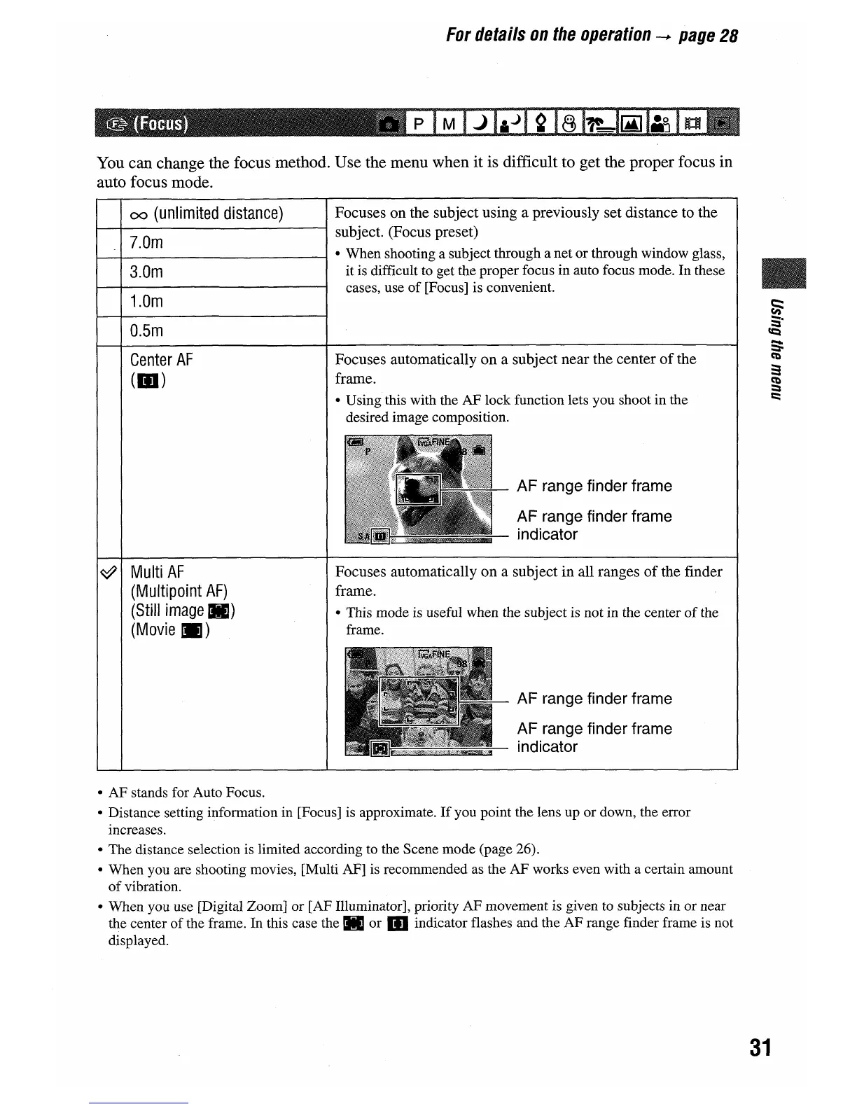 Sony DSC-W5 - Camera Focusing Modes; Focusing Method Selection; Center AF Functionality; Multi AF Functionality
