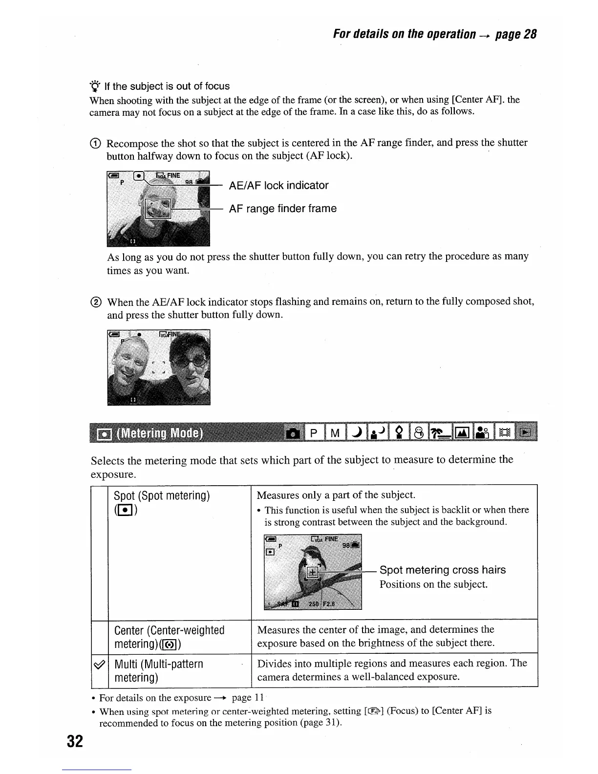 Sony DSC-W5 - Camera Metering Modes; Metering Mode Selection; Spot Metering Usage; Center-Weighted Metering Usage
