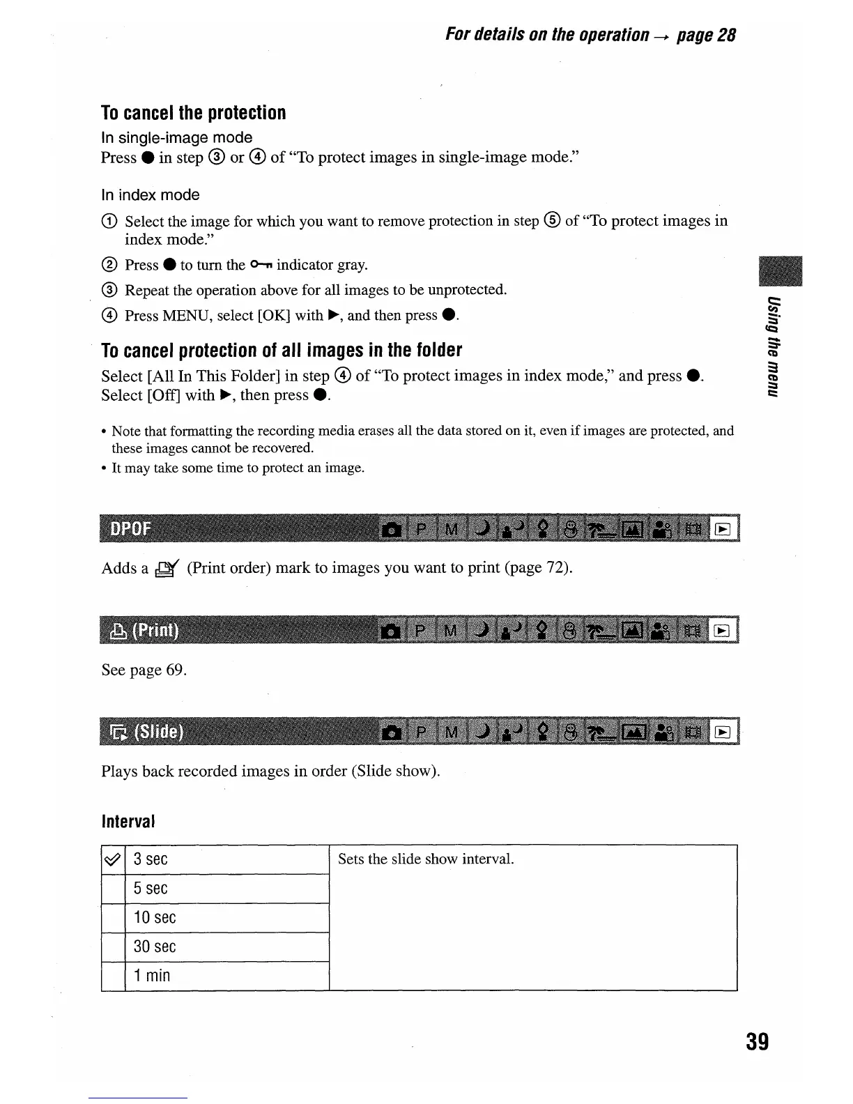 Sony DSC-W5 - Slide Show and DPOF Features; Slide Show Configuration; DPOF Marking Guide