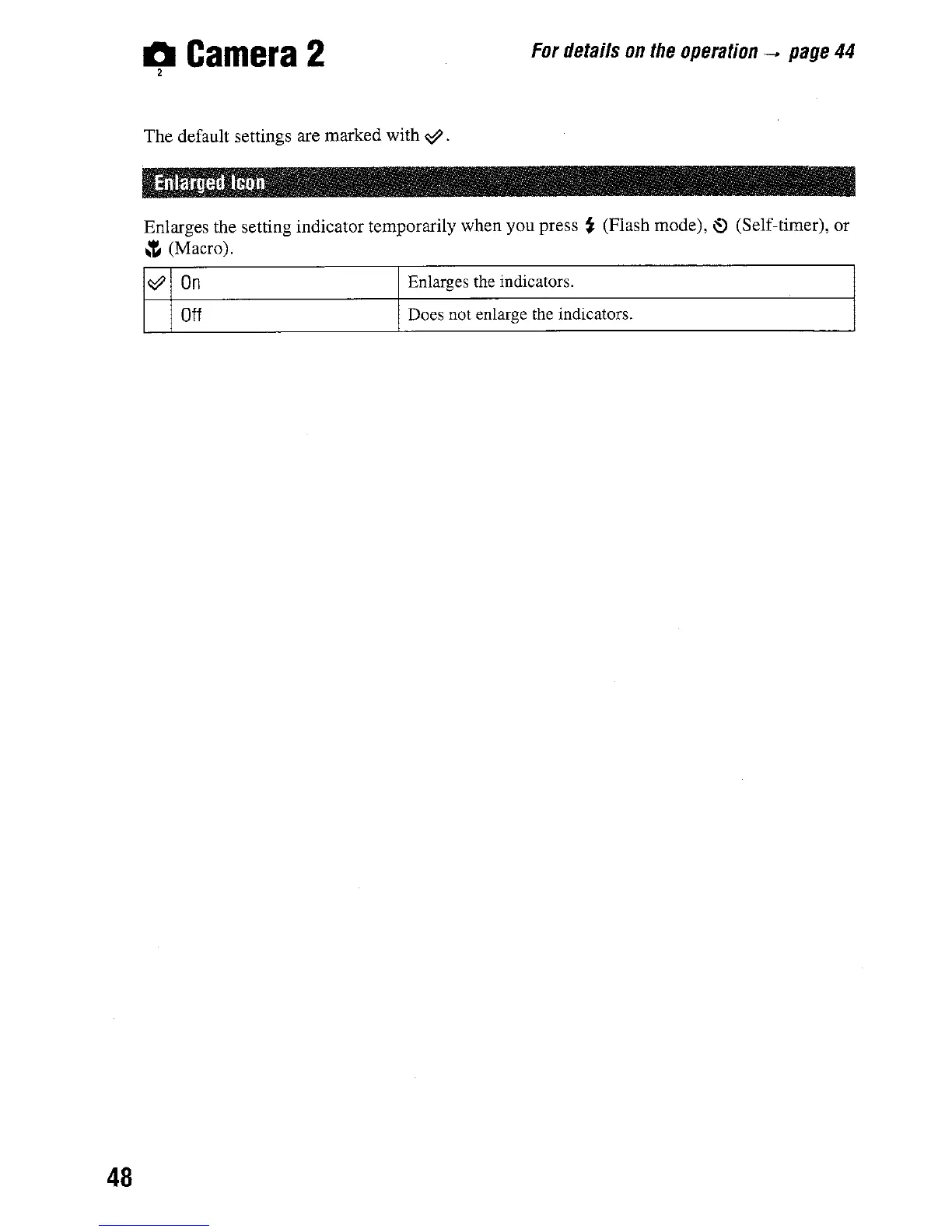 Sony DSC-W5 - Camera Settings: Group 2; Enlarged Icon Display Option