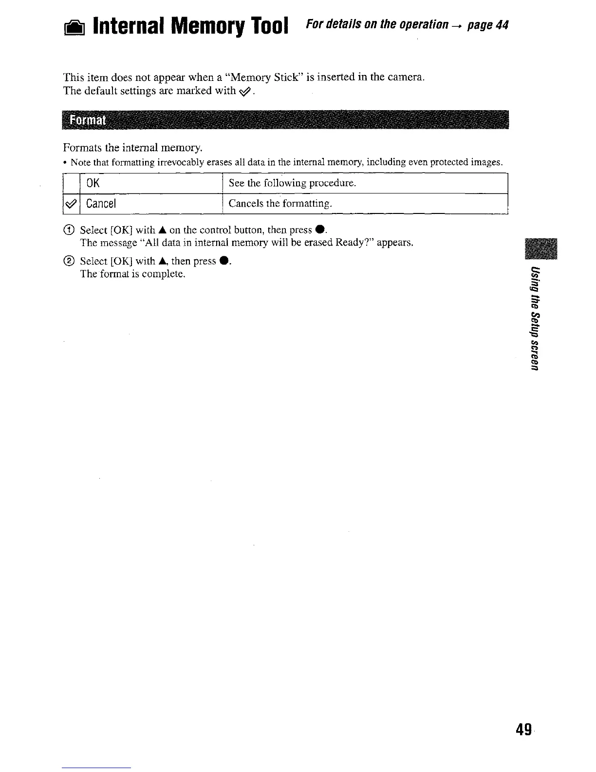 Sony DSC-W5 - Internal Memory Management; Formatting Internal Memory
