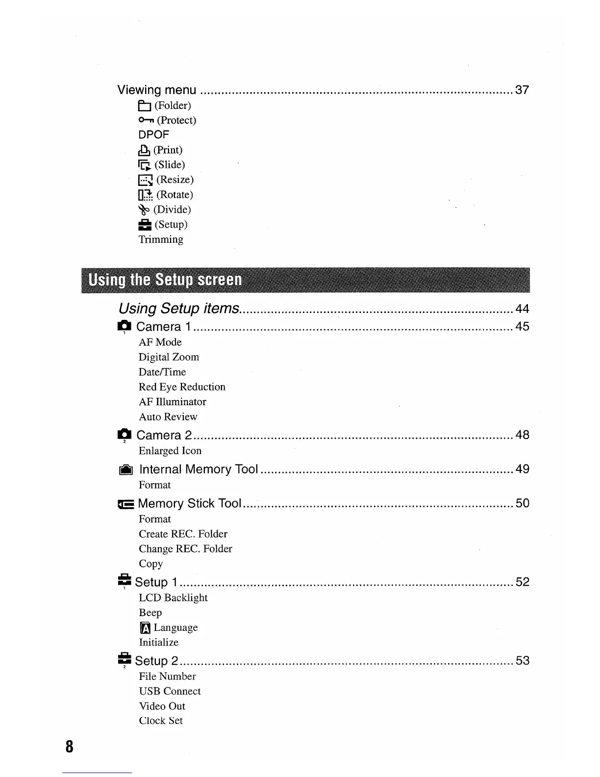 Sony DSC-W5 - Menu Navigation and Settings; Menu Item Access; Shooting Menu Configuration; Camera Setup Options