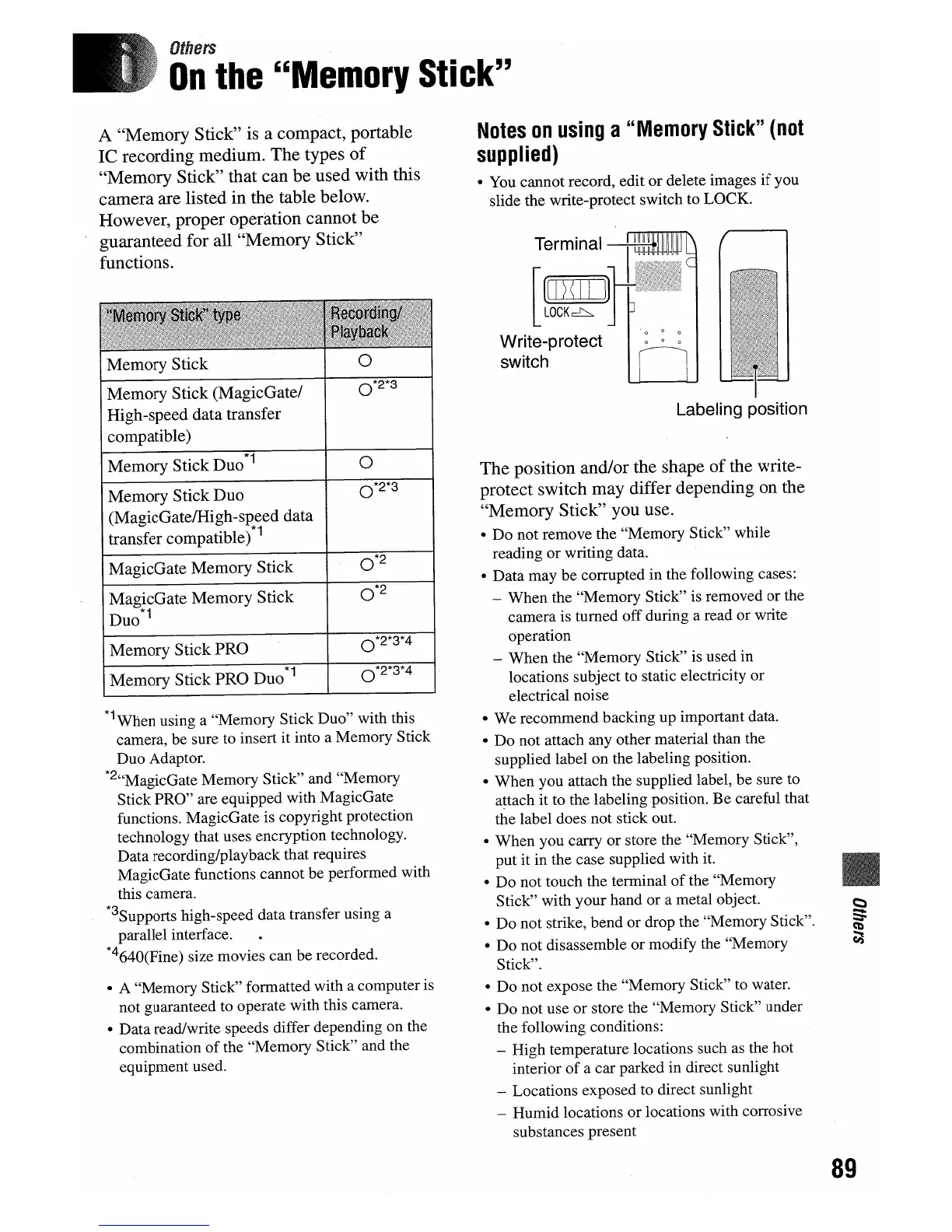 Sony DSC-W5 - Memory Stick and Internal Memory Usage; Memory Stick Insertion Guide; Memory Stick Recording Errors; Memory Stick Formatting Errors