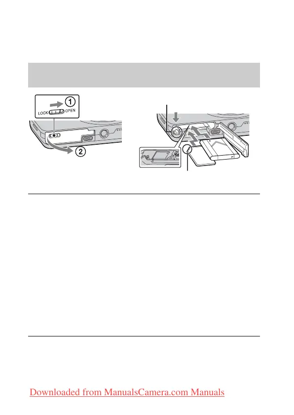 • Вставьте карту памяти до щелчка, чтобы срезанный уголок