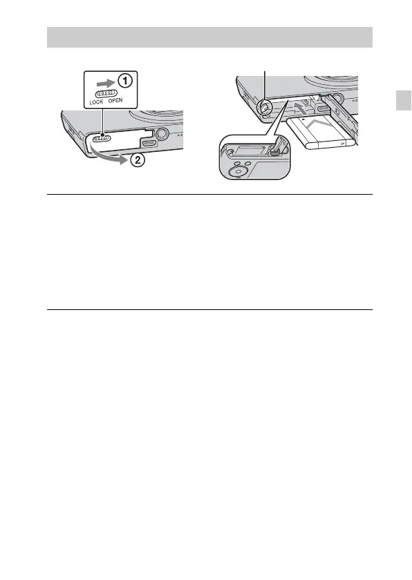 • Tout en appuyant sur le levier d’éjection de la batterie, insérez la
