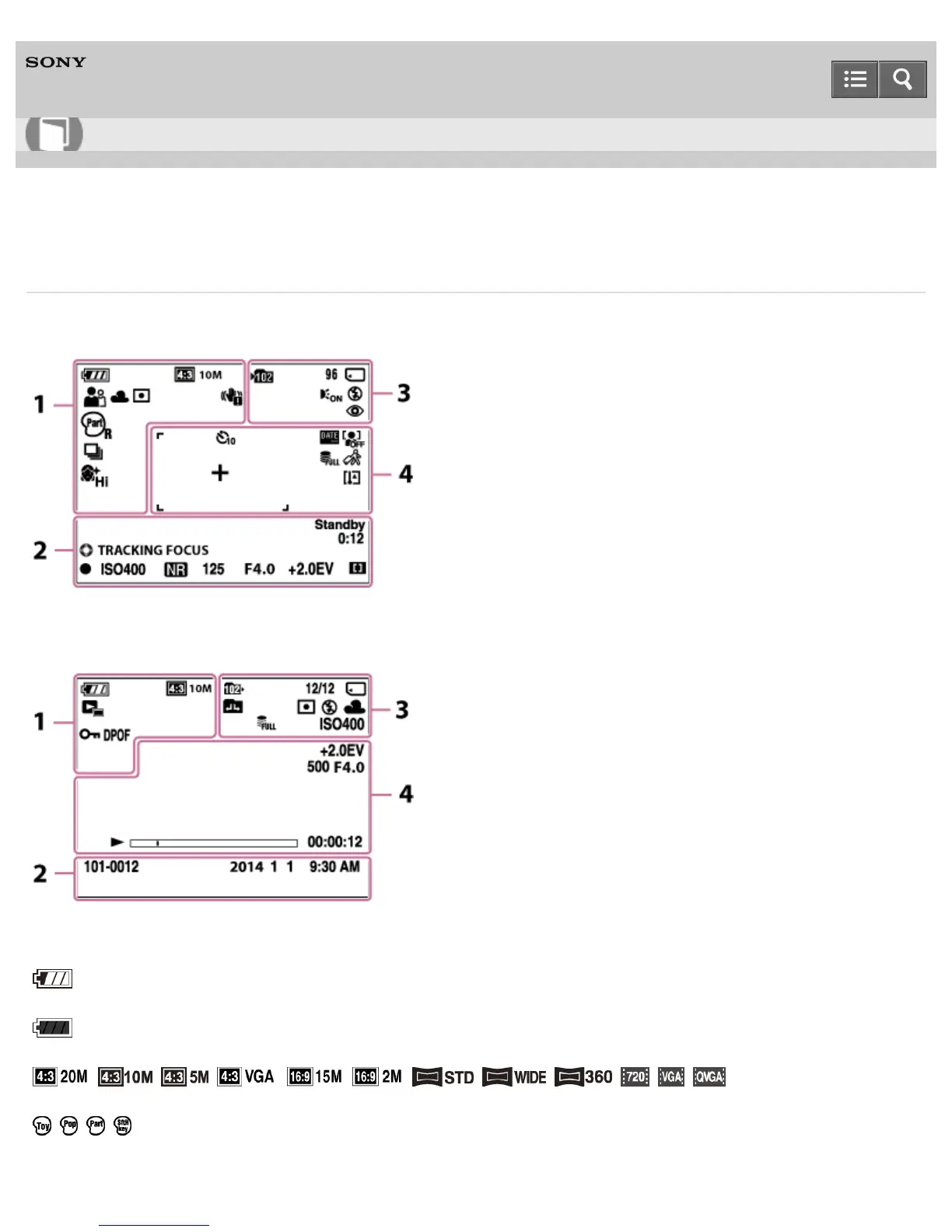 Sony DSC-W810 - List of Icons Displayed on the Screen