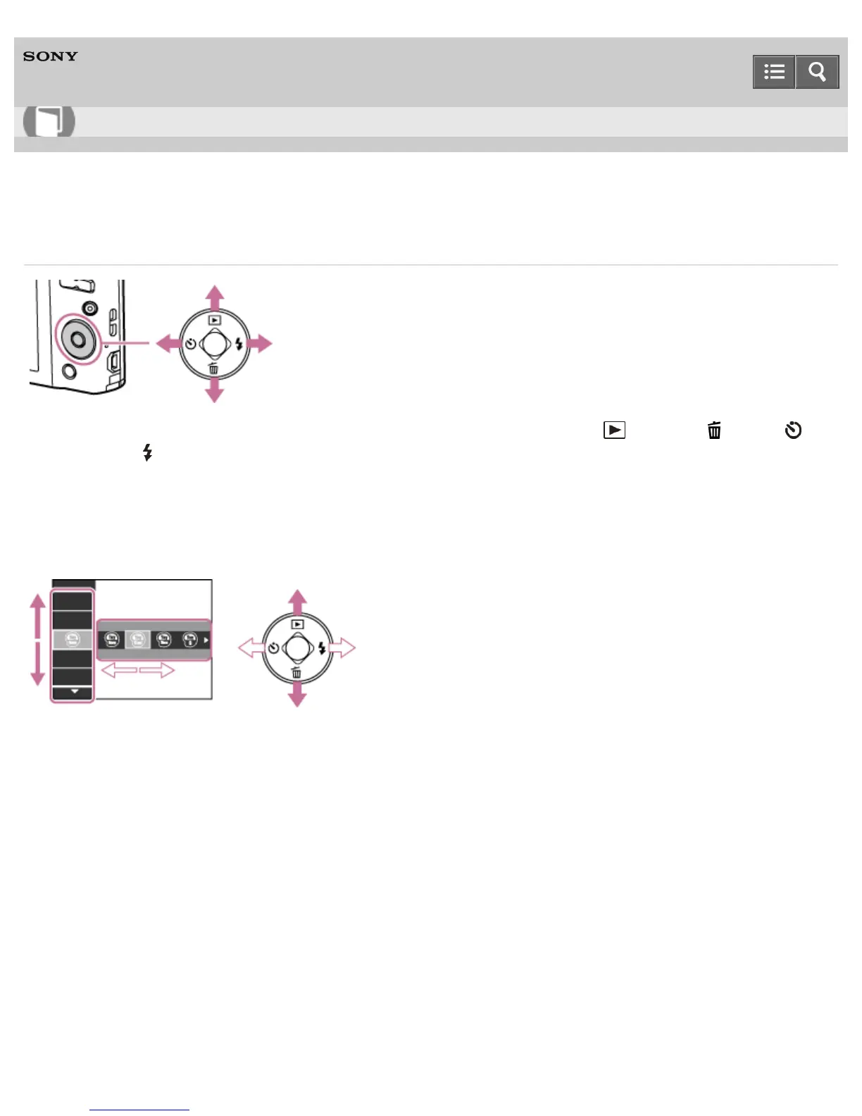 The following functions are located on the up/down/right/left side of the control button: (Playback), (Delete),