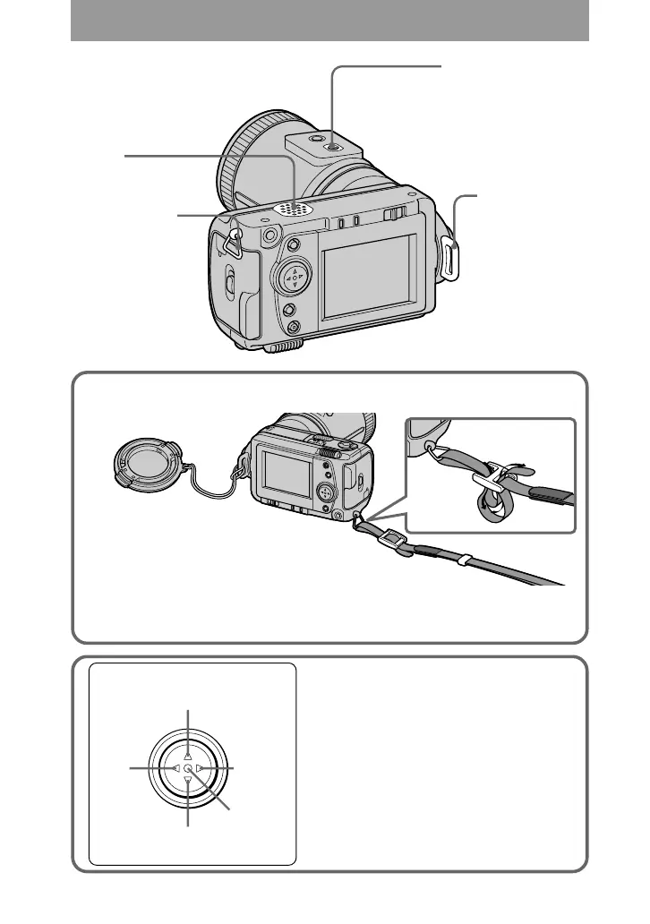 Fijación de la tapa del objetivo (suministrada) y correa para la muñeca (suministrada).