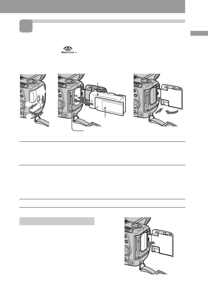 Inserte el “Memory Stick” con la marca v orientada hacia el compartimiento del