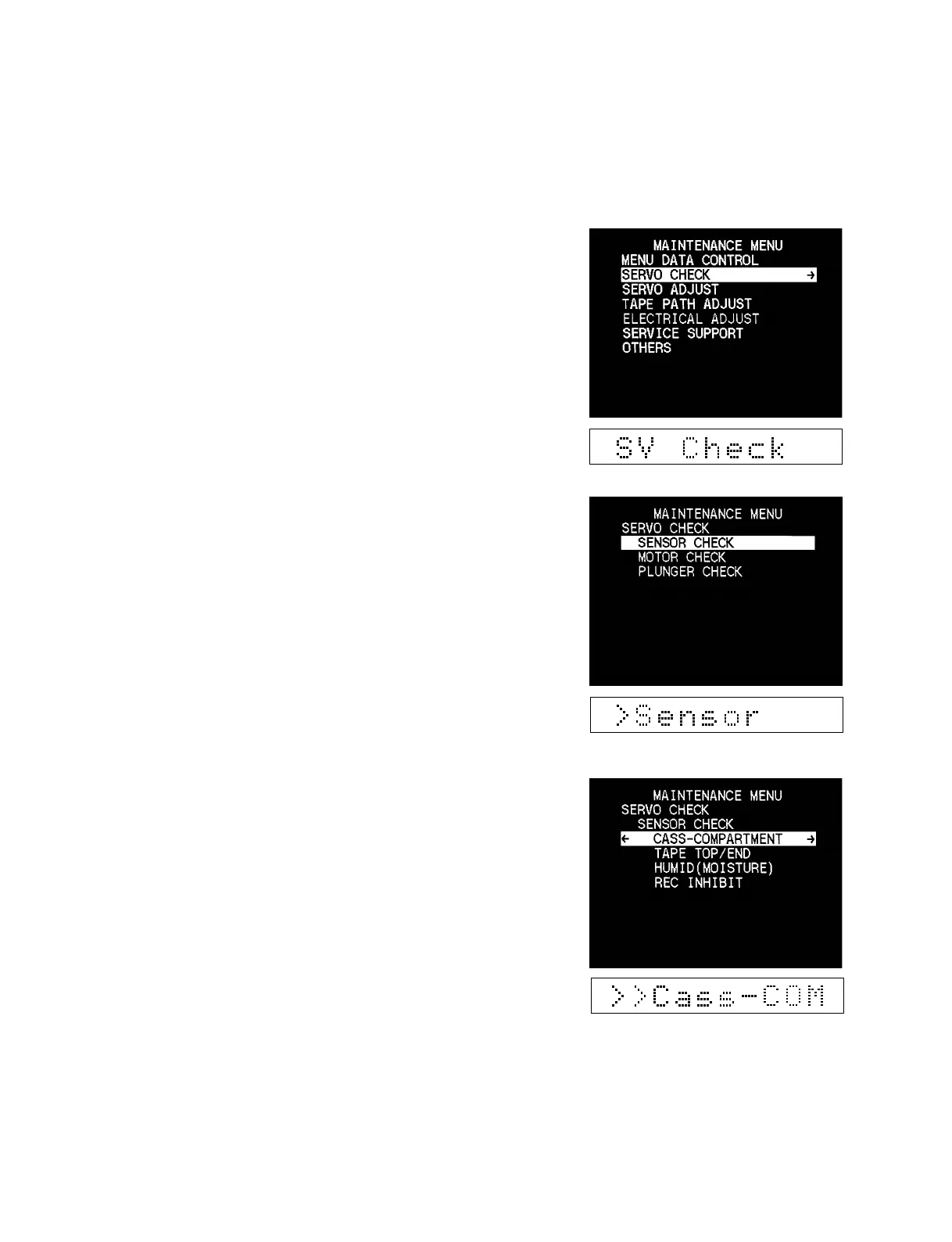 “SERVO CHECK” is selected and its lower layer submenu