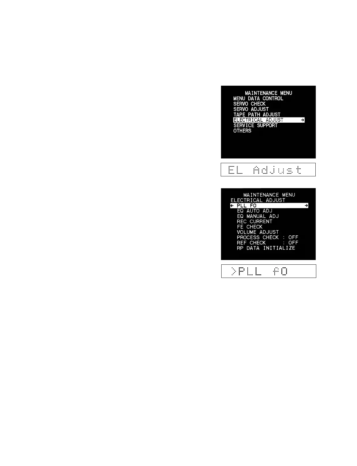 “ELECTRICAL ADJUST” is selected and its lower-layer