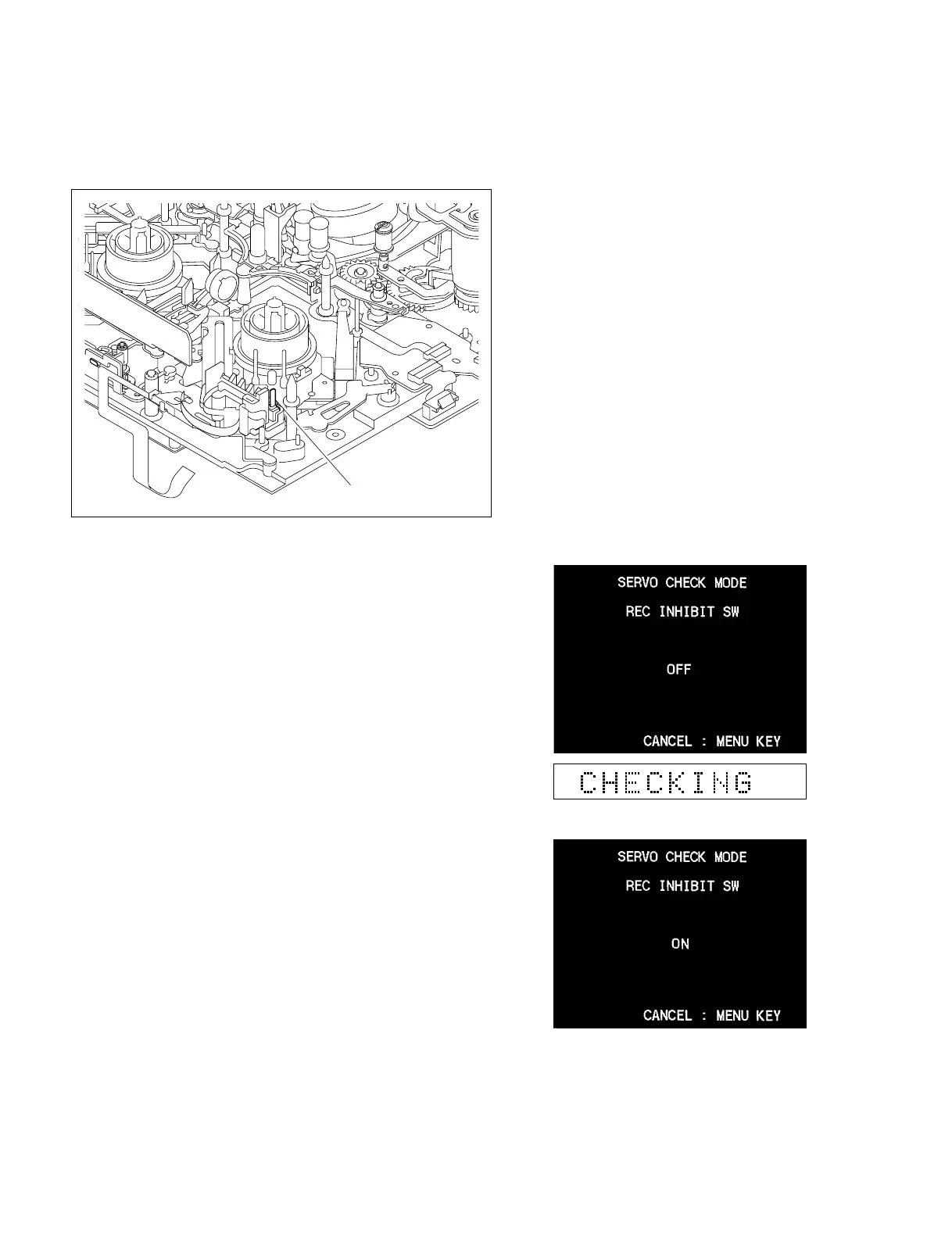 Checks the REC INHIBIT switch.