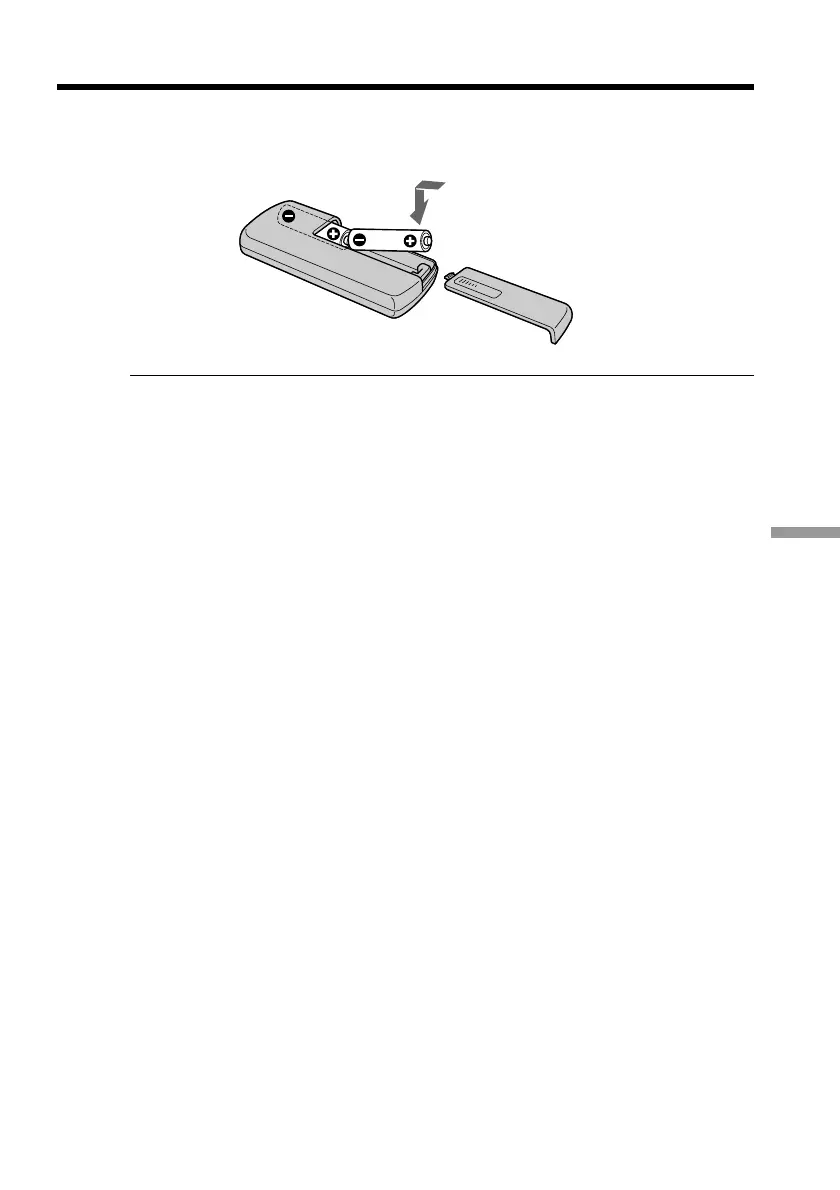 Insert two size AA (R6) batteries by matching the + and – polarities on the batteries to