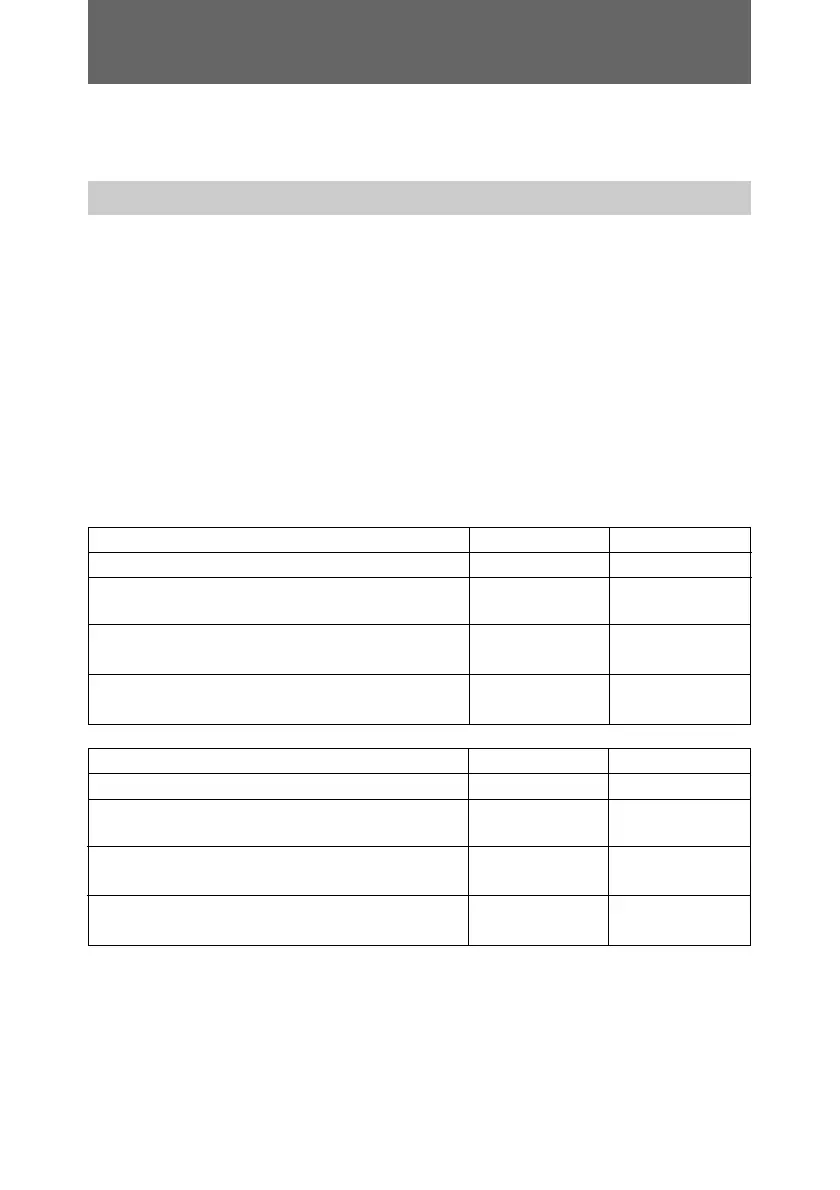 The following tables show the initial settings and reference