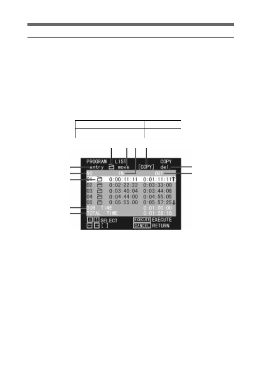 sélectionner ENTRY, Claquette, MOVE, COPY ou DEL.