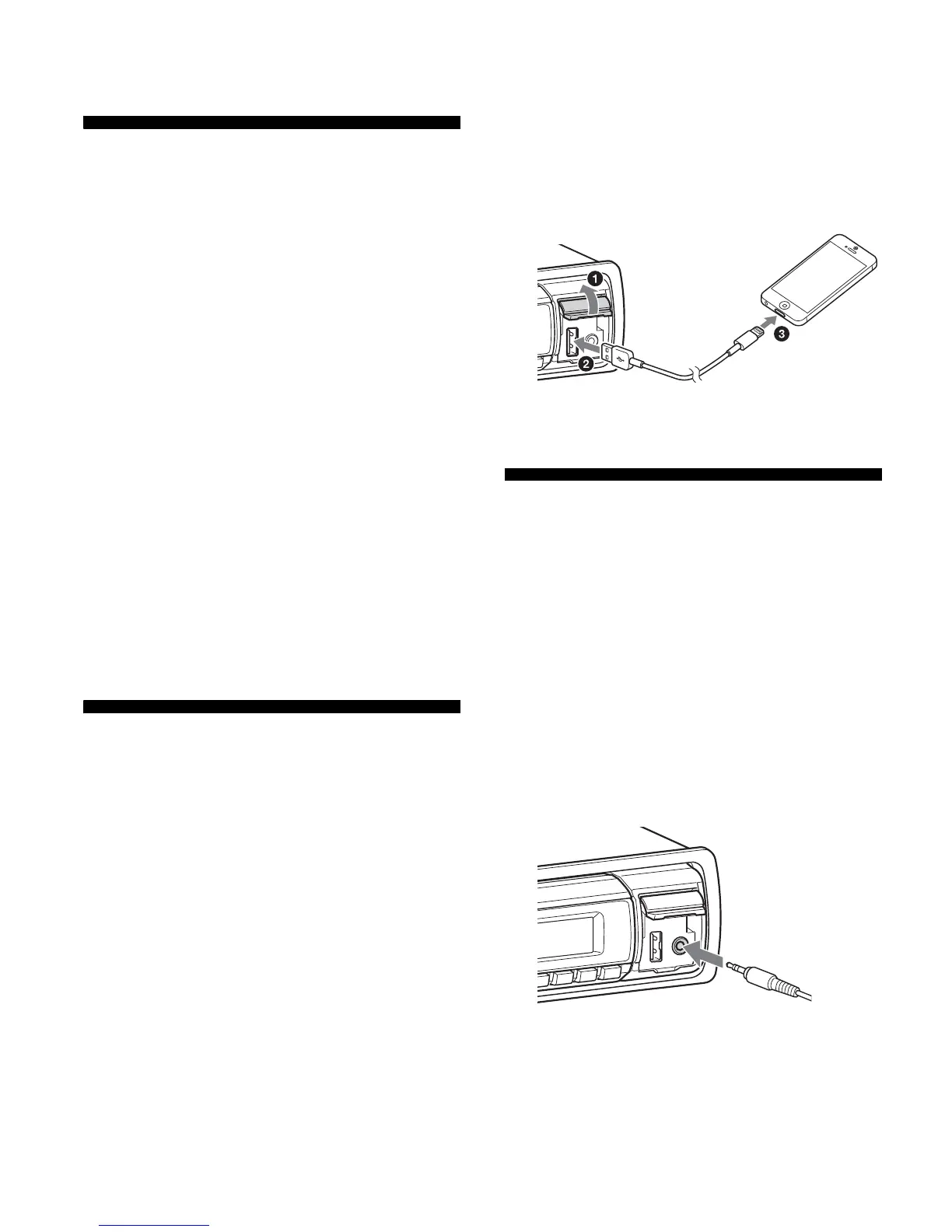 To connect an iPod/iPhone, use the USB