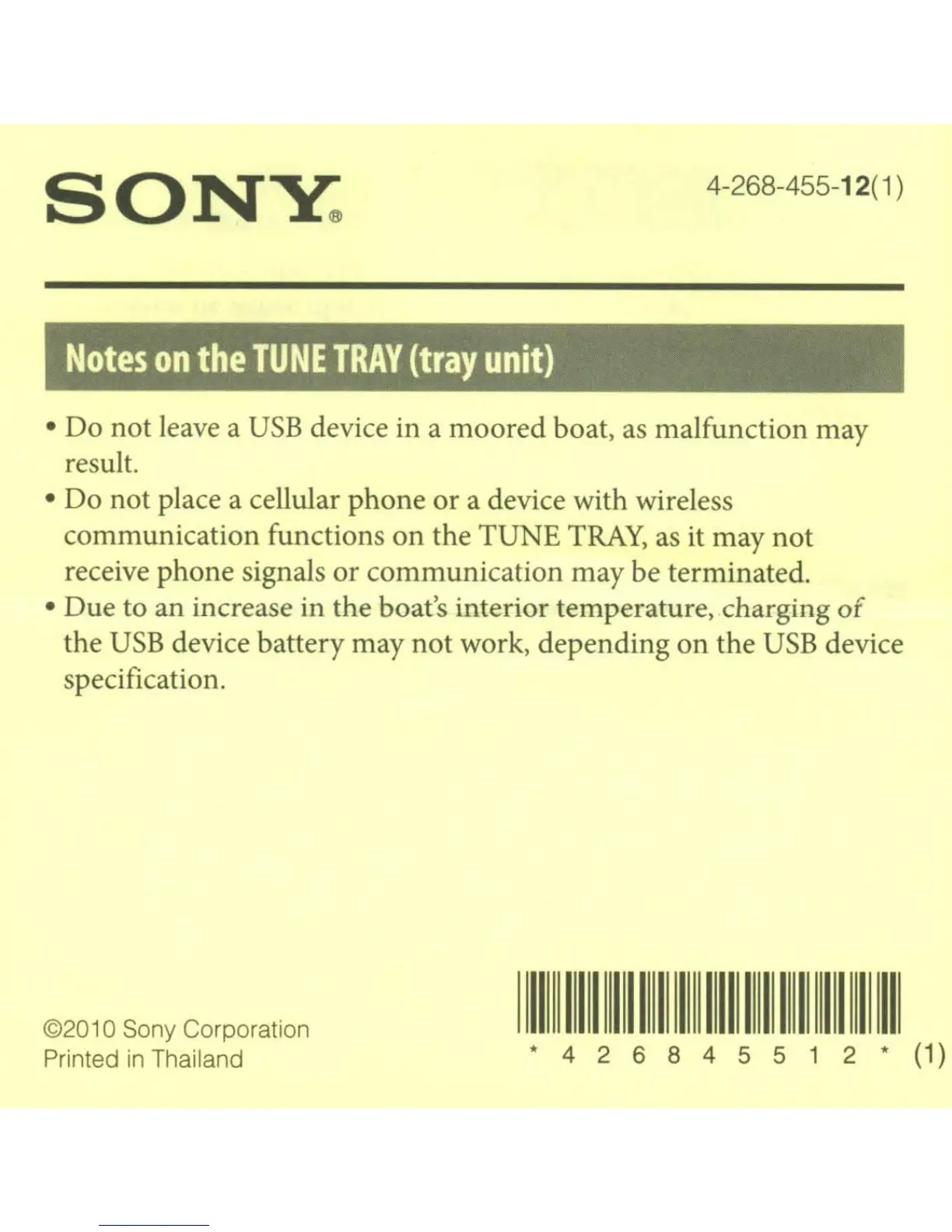 Sony DSX-MS60 - TUNE TRAY Usage Precautions; TUNE TRAY capacity and device size