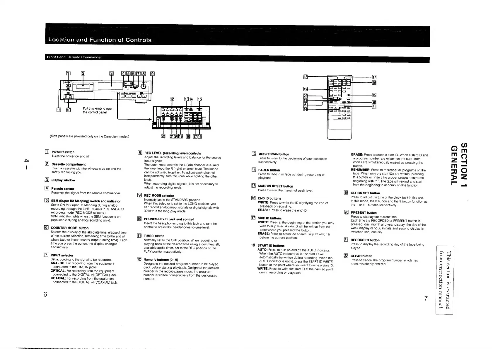 Sony DTC-60ES - Section 1 General; Location and Function of Controls