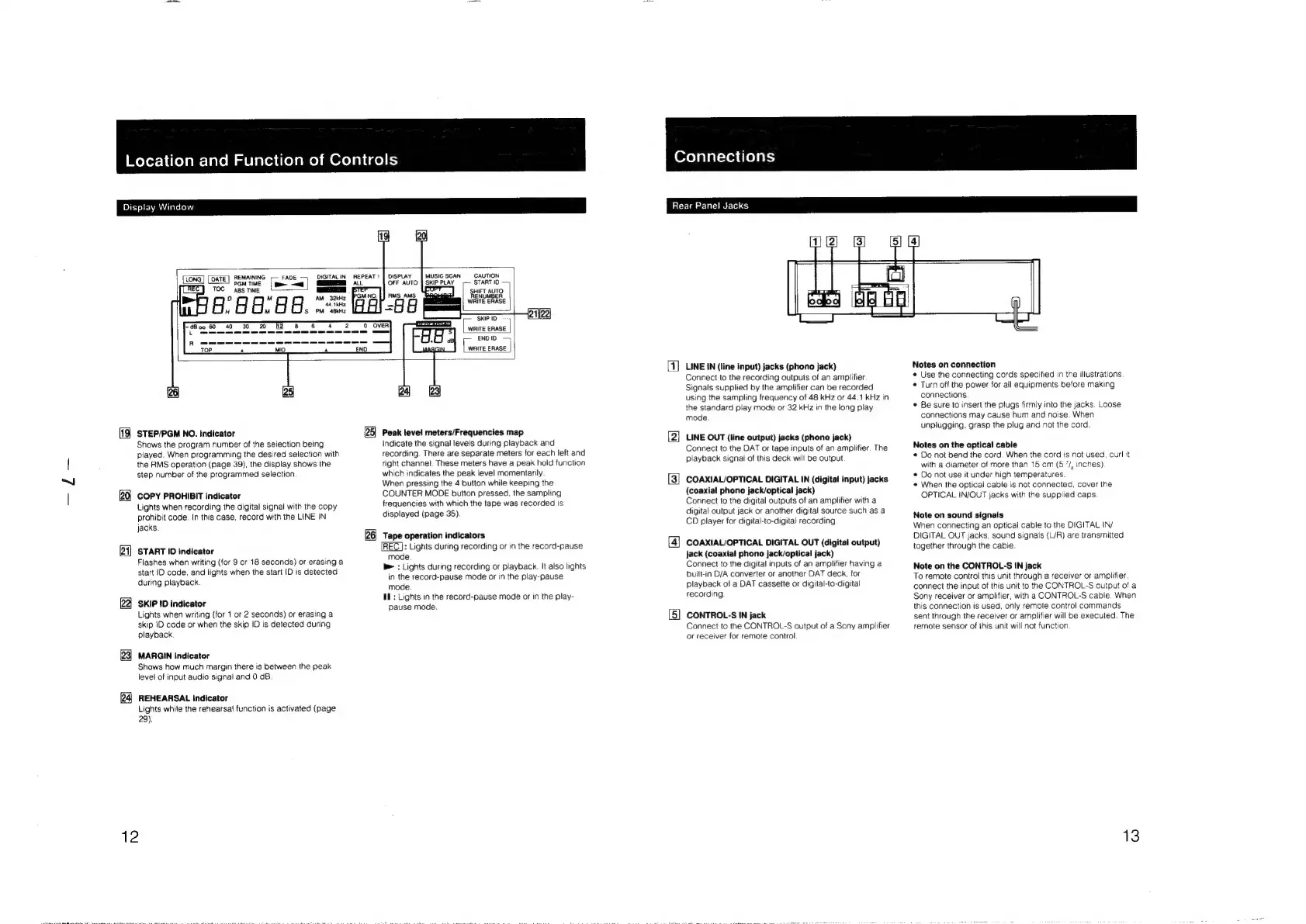 Sony DTC-60ES - Connections; Rear Panel Jacks and Notes