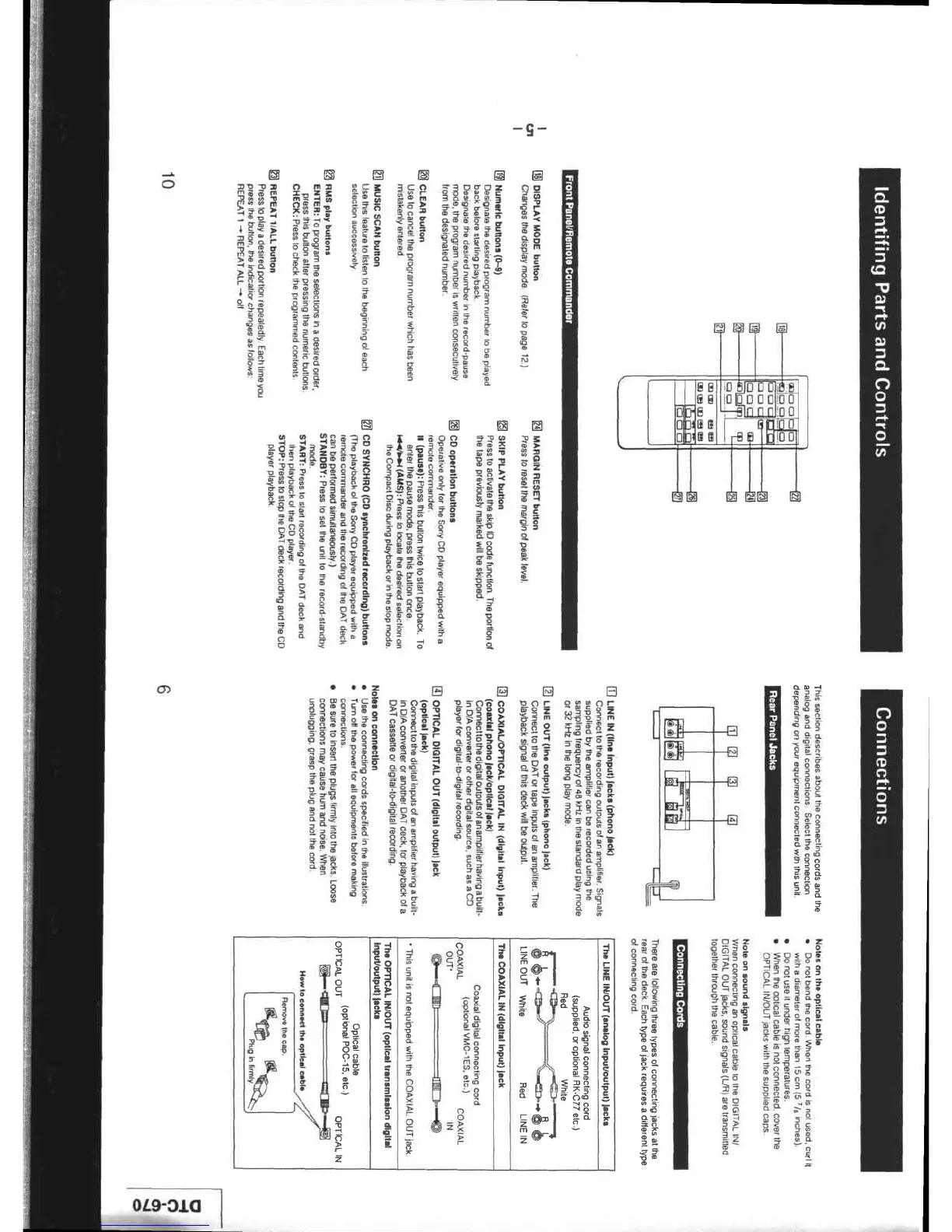 Sony DTC-670 - Rear Panel Jacks; Connecting Cords