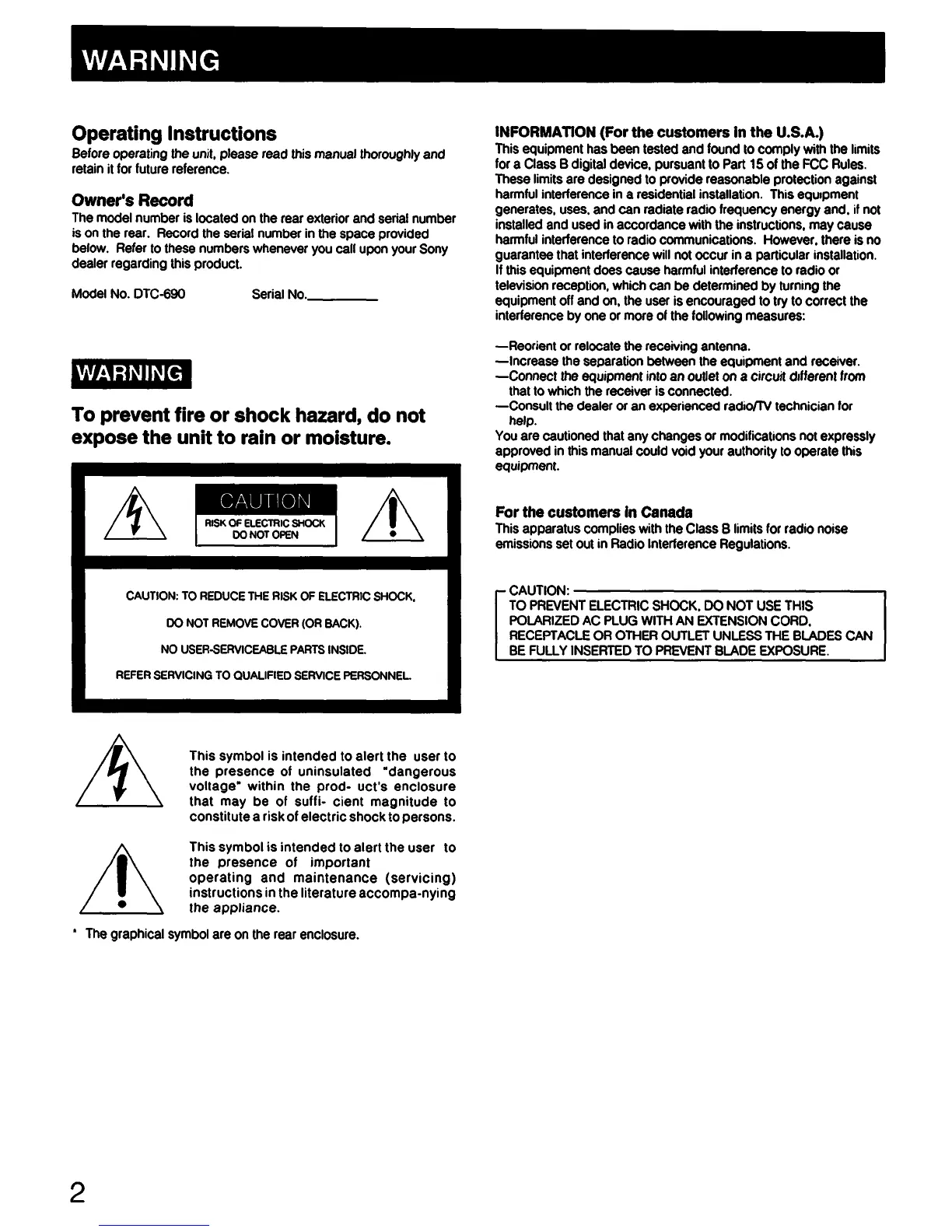 Sony DTC-690 - Warning