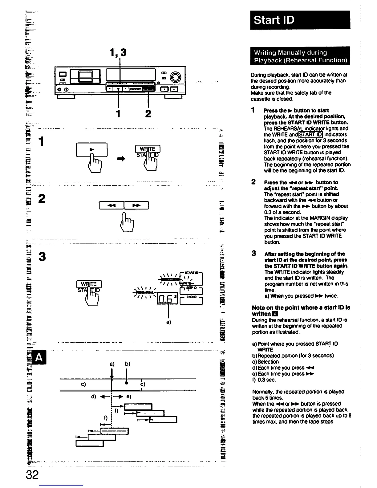 Sony DTC-690 - Start ID: Manual Writing During Playback; Manual Start ID Writing During Playback